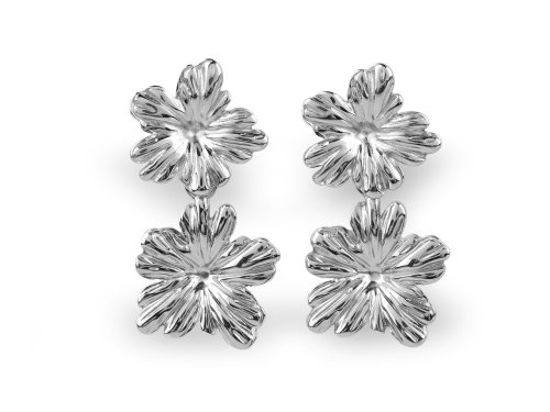 Náušnice se zavěšenými květy představují elegantní doplněk, který zaujme svým jedinečným designem. Jsou vyrobené z kvalitní nerezové oceli. Horní květ je pevný, dolní je zavěšený, při pohybu hlavou se pohupuje. Náušnice využijete na každodenní nošení i ke slavnostním událostem, působí romanticky. Puzeta je s kovovou zarážkou proti vypadnutí.
