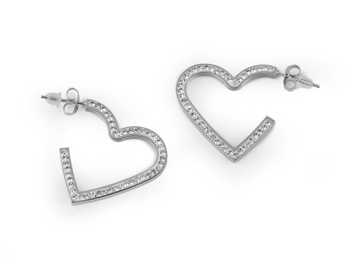 Náušnice srdce z kvalitní nerezové oceli jsou osázené broušenými kamínky s oslnivým třpytem. Jsou nepřehlédnutelné, vynikají svým unikátním designem. Můžete je nosit jako každodenní doplněk, který dodá vašemu oblečení elegantní nádech nebo je použít jako součást slavnostnějšího outfitu na speciální události. Puzeta je s kovovou zarážkou proti vypadnutí.