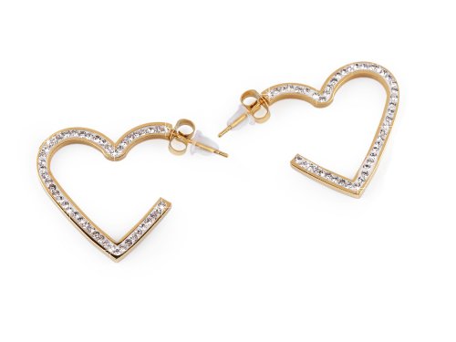 Náušnice srdce z kvalitní nerezové oceli jsou osázené broušenými kamínky s oslnivým třpytem. Jsou nepřehlédnutelné, vynikají svým unikátním designem. Můžete je nosit jako každodenní doplněk, který dodá vašemu oblečení elegantní nádech nebo je použít jako součást slavnostnějšího outfitu na speciální události. Puzeta je s kovovou zarážkou proti vypadnutí.