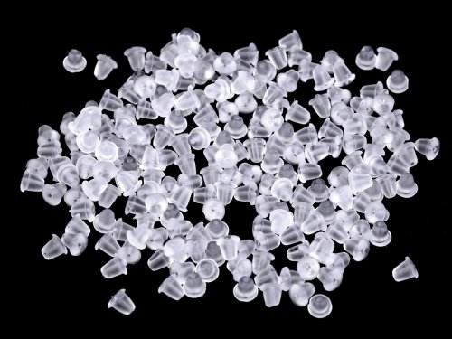 [Praktická silikonová zarážka transparentní barvy] k puzetám s hlavičkou, lůžkem, sítkem, afroháčkům apod. je nezbytným prvkem k otevřenému náušnicovému zapínání. Zajistí, že náušnice nevypadne z ušního lalůčku. Sáček 1 g obsahuje přibližně 30 ks. Sáček [22 g obsahuje cca 660 ks.]