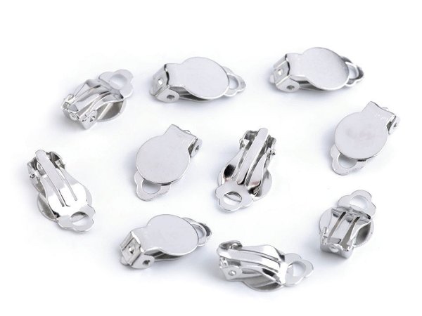 Náušnicové klipsové zapínání je určeno ženám, které nemají dírky v uších. Ploška o průměru 10 mm slouží k nalepení kabošonu, perly, půlperle či plochého korálku. Využít můžete i drobné textilní květy, mašličky, fimo, růžičky a jiné ozdoby.