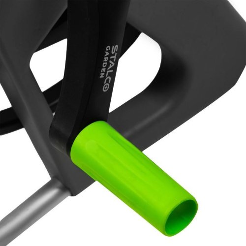 konstrukce z hliníku a plastu klika s pohodlnou rukojetí montáž bez použití nářadí kapacita navijáku: 1/2” – 45 m 5/8” – 30 m