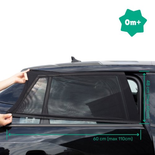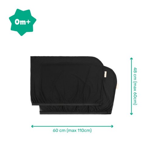 Sada 2 slunečních clon, které jsou ideální pro ochranu děťátka a jeho pohodlí při cestách autem.