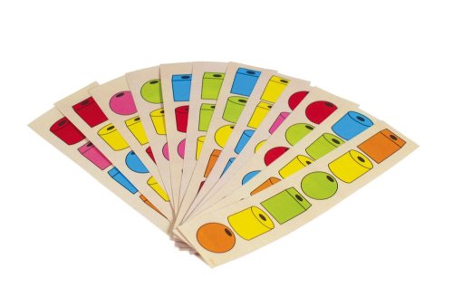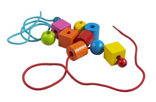 Dřevěné maxiperle různých tvarů o průměru 20 mm se šňůrkou na navlékání v plastovém kyblíku.