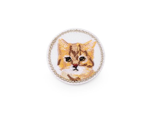 Kulatá nažehlovačka kočky má kvalitní, detailní provedení. Je s výšivkou, jemně se leskne. Proužek po obvodu je vyšitý zlatým lurexem. Vynikne na oblečení pro děti, módních doplňcích i na bytových dekoracích. Má mnohostranné využití, slouží nejen k opravě děravého oblečení, ale i k jeho ozdobení.