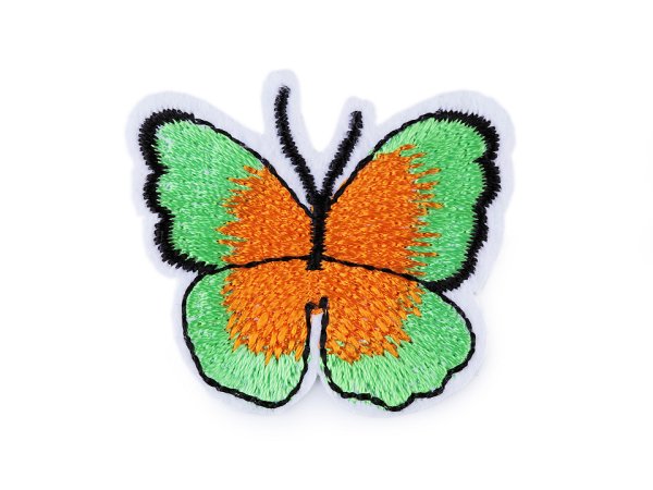 Nažehlovačka motýla má kvalitní provedení. Je celoplošně vyšívaná a jemně se leskne. Vynikne na oblečení, módních doplňcích i na bytových dekoracích.