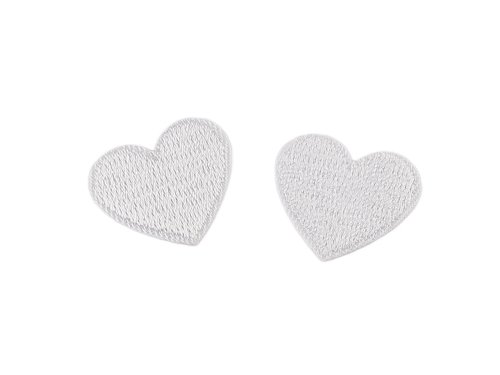 Nažehlovačka srdce celoplošně vyšívaná - bílá (10 ks)