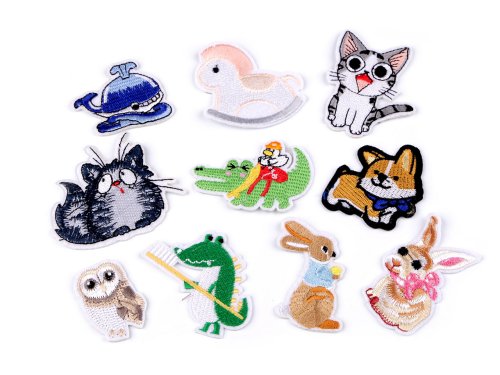 Nažehlovačky zvířátek mají detailní provedení, jsou velice kvalitní díky celoplošnému vyšívání. Vyniknou na oblečení pro děti, módních doplňcích i na bytových dekoracích. Mají mnohostranné využití, slouží nejen k opravě děravého oblečení, ale i k jeho ozdobení. Mix je složený z 10 různých zvířátek viz foto.