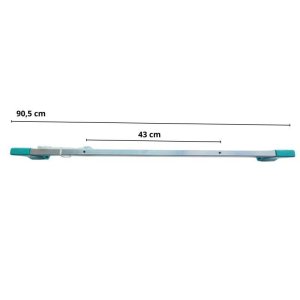 ND stabilizátor k žebříku 7608, 7609, 7807, 7808, 7809, ALVE rozměry AL profilu: délka 90,5 cm, šířka 2 cm, výška 6 cm patka: výška 9 cm, šířka 6 cm, hloubka 2,5 cm roztěč otvorů pro upevnění 43 cm
