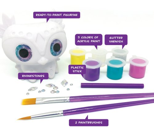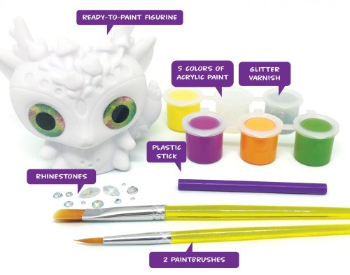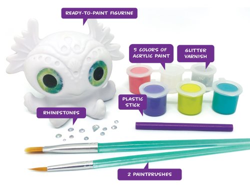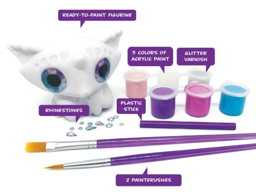 Nebulous Stars Barvení figurky. Velikost figurky 8 cm. Obsah - figurka, 5 barev, třpytivý lak, kamínky, 2 štětce, hůlka, návod. 6 variant.