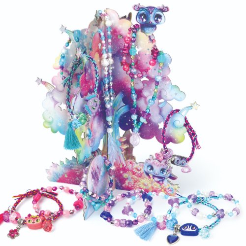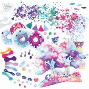 Nebulous Stars Hvězdný strom set na výrobu šperků. Sada na výrobu vlastních šperků a Hvězdný strom, abyste si vytvořené šperky mohli vystavit. Obsah balení - kartonový hvězdný strom na pověšení šperků, 4 splétací kruhy na pletení náramků ve 4 vzorech, nylonové provázky 8 barev, 6 metrů elastického provázku, přes 2000 korálků různých tvarů a barev, 4 kovové přívěsky, 4 střapcové přívěsky, 4 gumové přívěsky s animouši, 10 kovových spon, 30 spojovacích kroužků, obrázkový návod.