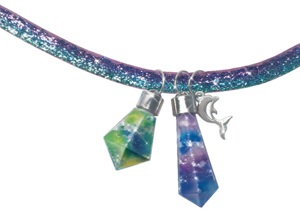 Pipetou přidejte několik kapek inkoustu na dno nádobky. Odtrhněte malý kousek vaty a zatlačte ji dovnitř nádobky pomocí hrotu pipety, dokud se nezabarví. Přidejte několik kapek vody a poté přidejte na mokrou vatu další barvu. Na okraje nádobky naneste trochu třpytu. Opakujte kroky 1 až 4 se střídajícími se barvami, dokud není nádobka plná. Nyní šeptem vyslovte své přání a zavřete lahvičku, abyste ho udrželi v bezpečí. Připojte nádobku k pásce a je hotovo, nyní stačí myslet na své přání. Doporučený věk: od 7 let