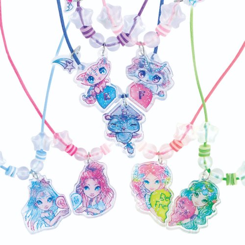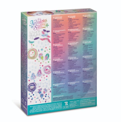 Nebulous Stars Náhrdelníky přátelství set. Vyrob si náhrdelníky přátelství. Obsah balení - 7 velkých třpytivých akrylových přívěsků, 7 malých akrylových přívěsků, 98 různých korálků, 14 spojovacích kroužků, 7 barevných hedvábných provázků, arch s lepícími kamínky, a barevný návod.