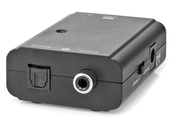 Konektory: 1 x Toslink (vstup), 1 x RCA (S/PDIF vstup), 2 x RCA (výstup)