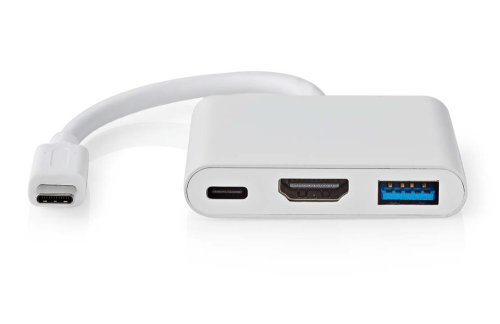 USB 3.2 Gen 1 | USB-C™ Zástrčka | USB-A Zásuvka / USB-C™ Zásuvka / Výstup HDMI™ | 5 Gbps | 0.10 m | Kulatý | Poniklované | PVC | Bílá | Box