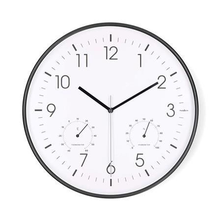 Průměr: 300 mm | Plast | Tichý pohyb | Teploměr | Vlhkoměr | Bílá / Černá