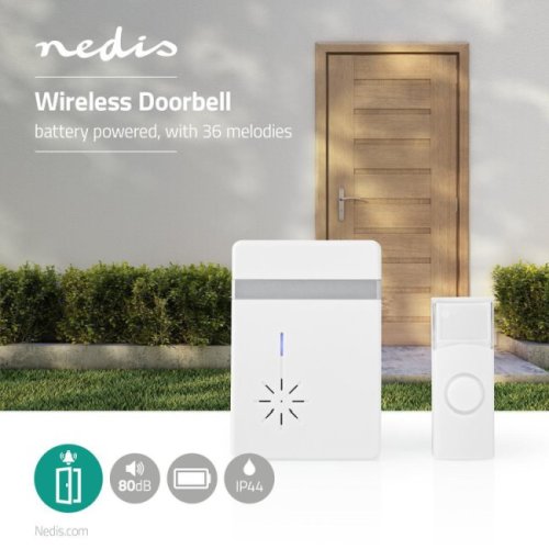 Bezdrátový zvonek s dosahem až 300 m při přímé viditelnosti. Po stisknutí tlačítka na zvonku se rozezní jedno ze 36 nastavitelných vyzvánění s hlasitostí až 80 dB. Napájení zvonku je realizováno dvěma AA bateriemi, napájení vysílače pak baterií typu CR2032.