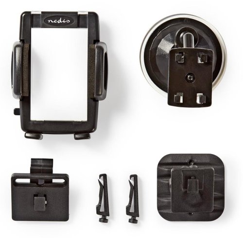 Držák do auta s nastavitelným úhlem pro mobilní telefon s displejem o velikosti 4" až 6,4". Držák lze přichytit na okno pomocí přísavky, na otvor ventilace či na palubní desku.