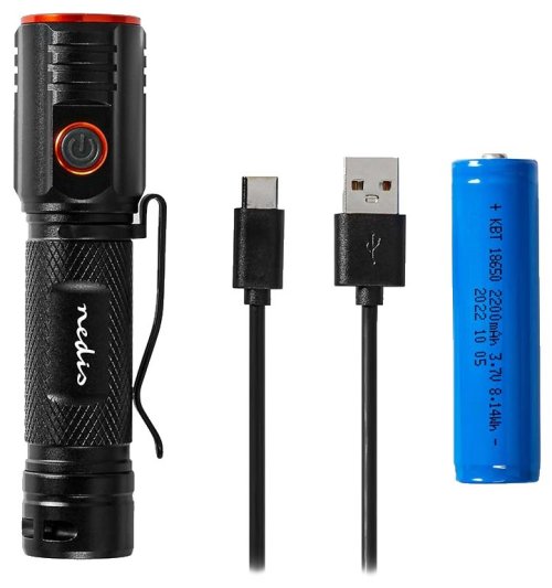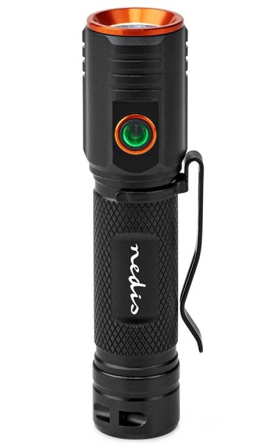 Přenosná LED svítilna Nedis LTRR20WBK s praktickým klipem, která je vhodná pro nošení u kapsy kalhot nebo košile. Pouzdro je zhotoveno z eloxovaného hliníku, díky čemuž je svítilna dostatečně pevná a odolná při každodenním používání. Pro nabíjení slouží port USB-C. Maximální svítivost 2200 lumenů osvětlí povrchy a okolí do vzdálenosti až 180 metrů, je ideální pro outdoorové aktivity, jako je kempování, turistika, výlety pod stan apod. Svítilna Nedis LTRR20WBK disponuje tlačítkem pro rychlé a jednoduché přepínání mezi 3 režimy intenzity. Dvojitým stisknutím aktivujete funkci stroboskopu.