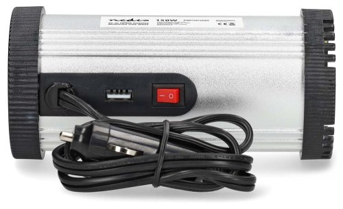 Měnič napětí s výkonem 150 W a modifikovanou sinusoidou je ideální řešení pro napájení nejrůznějších elektrických spotřebičů určených pro síťové napájení, jako například notebooků, chladicích boxů apod. Vstupní napětí měniče je 12 V DC, výstupní napětí 230 V AC a účinnost 85 %. Takto můžete v nákladních automobilech, lodích či obytných vozech používat domácí spotřebiče, aniž byste museli investovat do speciálního vybavení pracujícího s napětím 12 V. Není vhodný pro napájení elektroniky citlivé na tvar vstupního napětí. Měnič je vybaven napájecí zásuvkou se zemnicím kolíkem (typ E) a jedním USB portem s výstupním napětím 5 V DC. Samozřejmostí je ochrana proti přehřátí, přetížení, zkratu, přepólování (pojistka), podpětí a přepětí. Součástí měniče je 80cm kabel pro připojení do automobilové zásuvky.