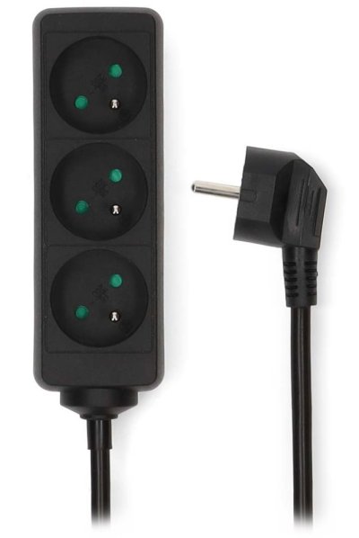 Tato prodlužovací zásuvka se zvýšenou ochranou kontaktů je vhodná k rozdělení zásuvky do tří napájecích bodů. Díky kontaktnímu úhlu 45° je tato napájecí lišta vhodná i pro úhlové zástrčky. Je vybavena 3 m dlouhým kabelem k napájení elektrických zařízení kdekoli doma nebo v kanceláři.