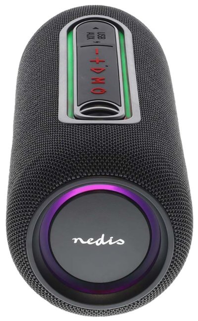 Bluetooth reproduktor Nedis SPBT2460BK představuje silné ideální ozvučení na cesty. Je kompaktní, snadno přenosný a dosahuje výkonu 30 W (10 W RMS). Díky tomu si kvalitní audio užijete v patřičné síle, ať už jen posloucháte oblíbené skladby a mluvené slovo, nebo pořádáte venkovní párty. Dynamicky blikající RGB LED osvětlení navodí také potřebnou atmosféru. Vše vměstnáno do prémiové konstrukce potažené elegantní tkaninou.