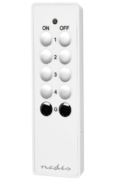 Chytrý 4kanálový vypínač s deseti tlačítky pro dálkové ovládání světelných zdrojů a dalších zařízení. Pro jeden kanál je možné zaregistrovat více přijímačů, což umožňuje zapínat a vypínat několik zařízení stisknutím jednoho tlačítka. Kromě 4 individuálních kanálů je na ovladači také skupinový přepínač, pomocí kterého lze zapnout či vypnout všechny kanály najednou. Funguje téměř se všemi stávajícími systémy s frekvencí 433,92 MHz bez ohledu na značku.