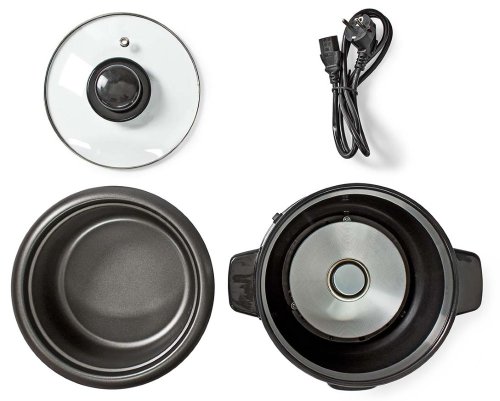 Rýžovar Nedis KARC110AL z nerezové oceli vám umožní za krátkou dobu připravit lahodnou rýži k obědu, večeři, na sushi a k dalším hlavním jídlům. Díky funkci automatického vypnutí nebo udržení teploty bude rýže krásně měkká a nerozvařená. Rýžovar Nedis má objem jeden litr a umožní připravit až 5 porcí rýže najednou. Díky tomu je vhodný pro přípravu jídla pro celou rodinu. Skleněné víko umožní sledovat celý proces vaření a díky nepřilnavému povrchu se nic rýže nepřichytí. Odnímatelná nádoba vám usnadní servírování a snadno se čistí.