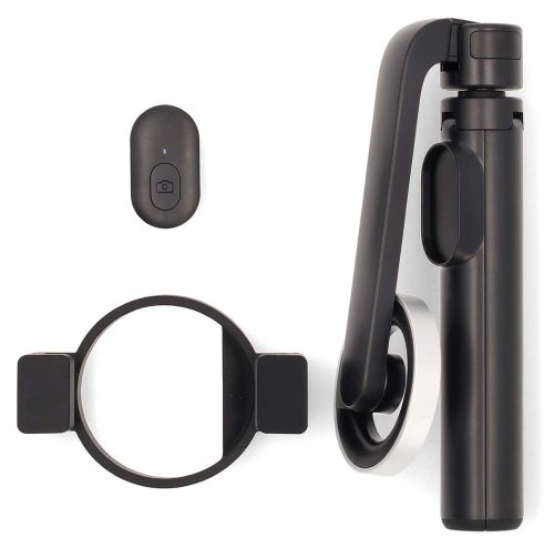 Magnetická skládací selfie tyč a mini stolní stativ v jednom. Magnetický držák s technologií super grip zajišťuje pevné držení bez jakéhokoli přepínání, pohybu nebo vibrací. Silikonový protiskluzový upevňovací kroužek dodává další vrstvu stability a zajišťuje, že vaše zařízení zůstane bezpečně na místě. Inovativní konstrukce umožňuje snadné horizontální a vertikální nastavení displeje o 360°. Součástí balení je bezdrátový dálkový ovladač, který je kompatibilní s iOS i Android telefony a snadno se připojuje pomocí Bluetooth. Napájení ovladače je řešeno pomocí baterie CR1632 (součástí balení).