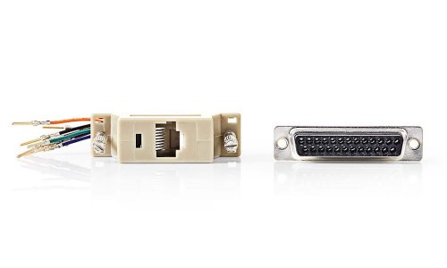 Sériový adaptér D-sub 25pin na RJ-45. D-Sub piny je možné do konektoru umístit podle potřeby.