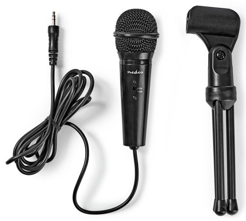 Stojan je otočný a naklopitelný, takže mikrofon snadno nastavíte do požadované pozice. Kondenzátorový všesměrový mikrofon Nedis podporuje precizní reprodukci zvuku a potlačuje šum, díky čemuž je vhodný pro nahrávání písní, karaoke, podcasty nebo prezentace přes aplikace a platformy jako Skype, YouTube nebo Twitch.