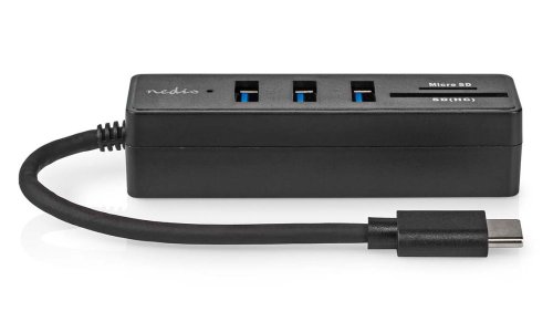 USB hub pro počítače, notebooky či tablety s rozhraním USB-C nabízí rozšíření o tři USB 3.0 porty, čtečku SD a microSD karet.