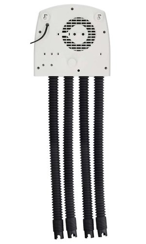 Vysoušeč obuvi Nedis HTSH40WT, který se postará o dva páry najednou díky čtyřem trubicím teplého vzduchu. Praktická konstrukce umožňuje instalaci na stěnu, díky čemuž efektivně šetří prostor. Výsuvný design trubic umožňuje nastavení délky v rozmezí 17 až 70 cm, takže lze efektivně vysušit různé druhy obuvi – od dětských tenisek přes vysoké dámské kozačky až po holínky.