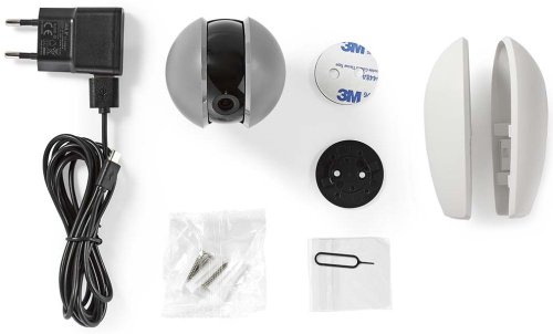 Součástí balení je alternativní barevný kryt, držák kamery, lepicí podložka, USB kabel a napájecí adaptér.