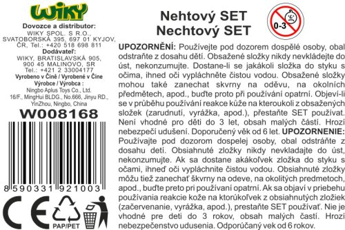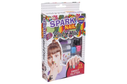 2 barevné laky 12 nehtů štěteček pilník nehtové nálepky 2 druhy třpytek 42 nálepek sladkostí návod Doporučený věk: 6+