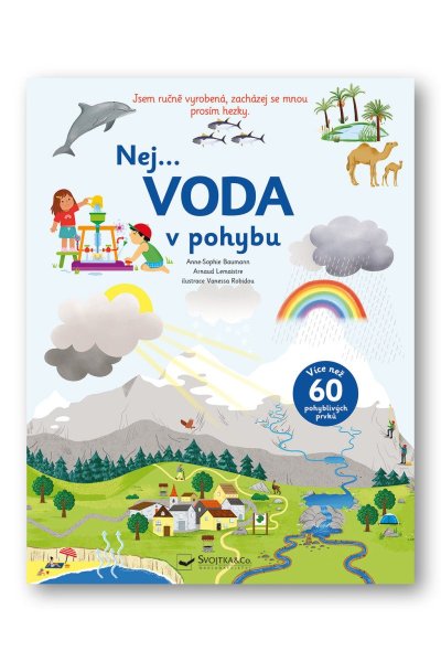 Od drobné kapky až k nekonečnému oceánu… Objevte fascinující svět vody! Voda, jeden z nejdůležitějších přírodních zdrojů na této planetě, se vyskytuje na zemském povrchu i v podzemí. Vytváří ledovce a nachází se dokonce i ve vzduchu. Tato interaktivní kniha poskytuje srozumitelný přehled všech oblastí, jichž se voda dotýká. Prozkoumejte, odkud voda pochází, a zjistěte, jaký k ní mají přístup organismy na Zemi. Objevte koloběh vody a ponořte se do hlubin oceánu za mořskými tvory. Zjistěte, jak se voda dostane až do vodovodního kohoutku. A co se s ní pak děje, když ji doma použijete? Odpověď na tuto a mnoho dalších otázek o vodě vám prozradí dvojstrany s detailními ilustracemi a spoustou pohyblivých prvků. Ty jsou připraveny, abyste je otevíraly znovu a znovu a objevili vše, co skrývají. Čeká vás více než 60 okének, posuvných a otočných prvků a prostorových obrázků. Obsah byl vytvořen s přispěním odborníků na oblasti, týkající se tématu vody. Kniha je ručně vyrobená; aby pohyblivé prvky dlouho vydržely, vyžaduje jemnější zacházení.