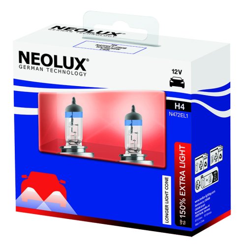 Halogenové žárovky NEOLUX EXTRA LIGHT vyhovují požadavkům předpisů ECE R37 a ECE R99 a mají tak homologaci pro použití v Evropě a v dalších zemích světa. Díky své inovativní konstrukci halogenové žárovky NEOLUX více než stoprocentně splňují bezpečnostní předpisy ECE ohledně UV záření. Žárovky jsou vysoce kvalitní za rozumnou cenu a vhodné pro většinu typů světlometů se skleněnými nebo plastovými čočkami.