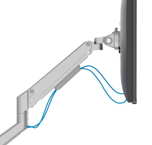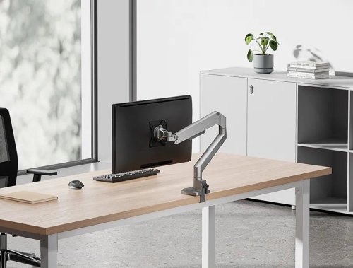 Plně pohyblivý stolní držák pro plochý nebo zakřivený monitor s úhlopříčkou 17" až 35" a maximální hmotností 9 kg (8 kg pro zakřivený monitor). Všestranná technologie naklápění, otáčení a rotace umožňuje vytvořit optimální pozorovací úhel. Držák má nastavitelnou výšku 21,5–49,5 cm, hloubku 7–52,5 cm a je vhodný pro obrazovky, které odpovídají vzoru otvorů VESA 75 × 75 až 100 × 100 mm. Potěší také systém pro úhledné vedení kabelů. Balení obsahuje stolní svorku i průchodku.