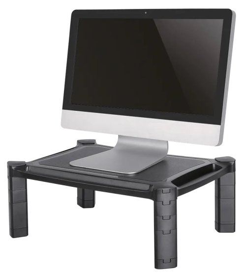 Stojan/podstavec pro obrazovky a notebooky do 10 kg. Výšku podstavce lze měnit v rozmezí 4,6 až 16,8 cm.
