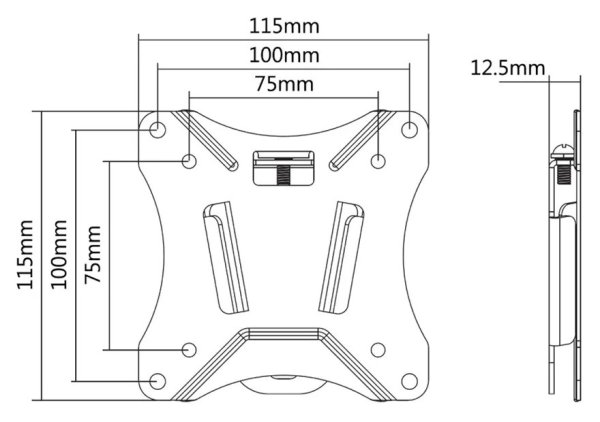 Fixní nástěnný držák pro ploché obrazovky s úhlopříčkou od 10" do 30" a hmotností až 25 kg. Držák má hloubku 1,3 cm a je vhodný pro obrazovky, které odpovídají standardům VESA 75 × 75 a 100 × 100 mm. Veškerý instalační materiál je součástí balení.