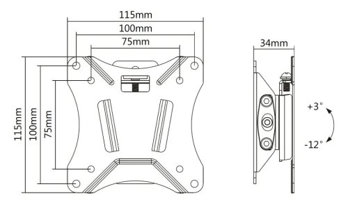 Sklopný nástěnný držák pro ploché obrazovky s úhlopříčkou od 10" do 30" a hmotností až 25 kg. Držák má hloubku 3,4 cm a je vhodný pro obrazovky, které odpovídají standardům VESA 75 × 75 a 100 × 100 mm. Veškerý instalační materiál je součástí balení.