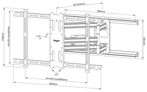 Sklopný a otočný nástěnný držák pro ploché obrazovky s úhlopříčkou od 43" do 86" a nosností až 60 kg. Možnost náklonu o -3° až +15° a otáčení o 35° umožňuje nastavit požadovaný úhel pohledu pro maximální flexibilitu při sledování obrazovky. Intuitivní systém správy kabeláže minimalizuje nepořádek. Držák má snadno nastavitelnou hloubku od 5 do 61 cm a je vhodný pro obrazovky, které odpovídají standardům VESA 100 × 100 až 800 × 400 mm. Přidanou hodnotou je praktický systém Easy-release pro připevnění televizoru mrknutím oka a samostatná vodováha + upevňovací šablona pro snadnou instalaci.