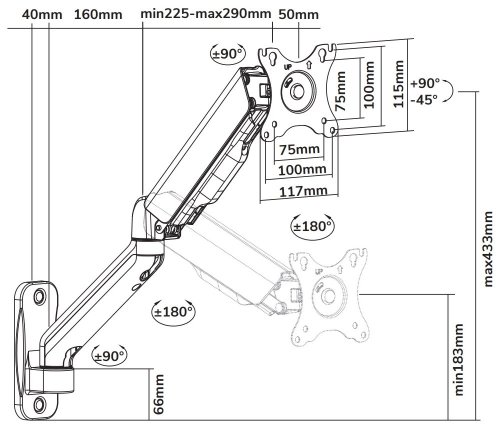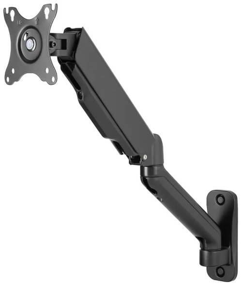 Nástěnný VESA držák je vhodný pro ploché LCD monitory o velikosti 17" až 32" a hmotnosti do 9 kg. Disponuje plynovým pístem pro vyrovnání zátěže a umožňuje snadné nastavení optimální výšky, náklonu, horizontálního otočení i změnu orientace na výšku (Pivot 360°). Intuitivní systém správy kabeláže minimalizuje nepořádek.