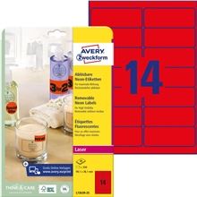 • Snímatelné etikety Avery Zweckform neonově červené barvy - etikety snadno upoutají pozornost, jsou ideální pro vytvoření dobře viditelných označení, při prodeji výrobků, promočních aktivitách nebo speciálních nabídkách