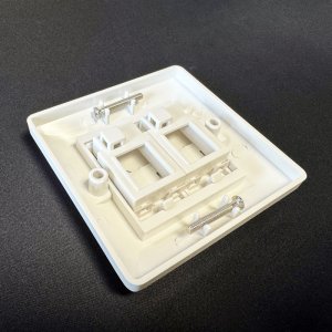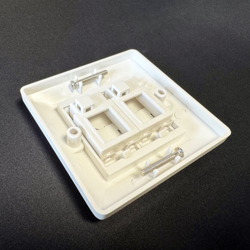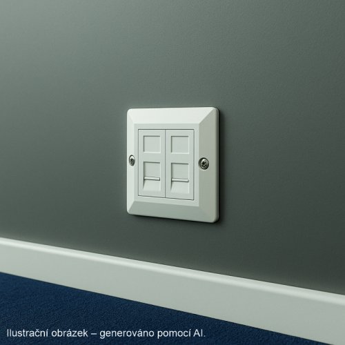 Vlastnosti: *Rozměry: 86 x 86 x 15 mm *Pro 2 standardní keystone moduly *Protiprachové krytky pro ochranu konektorů *Montáž do přístrojové krabice pod omítku (60 mm rozteč šroubů) *Jednoduchá instalace pomocí přiložených vrutů *Dodáváno bez keystone – vhodné pro většinu standardních modulů na trhu *Barva: bílá (vysoký lesk)