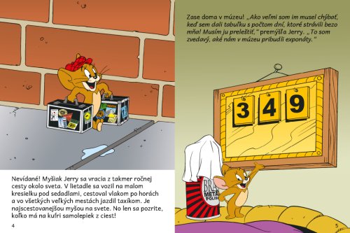 Myšák Jerry se po dlouhé cestě kolem světa vrací zpět domů do slavného muzea. Co na to říká kocour Tom, který žije v přesvědčení, že se do muzea už nikdy žádná myš nevrátí? Sledujte dobrodružství Toma a Jerryho v krátkém vtipném příběhu stránku po stránce. Jednoduchý text a spousta úžasných obrázků – jako stvořené pro začínající čtenáře!