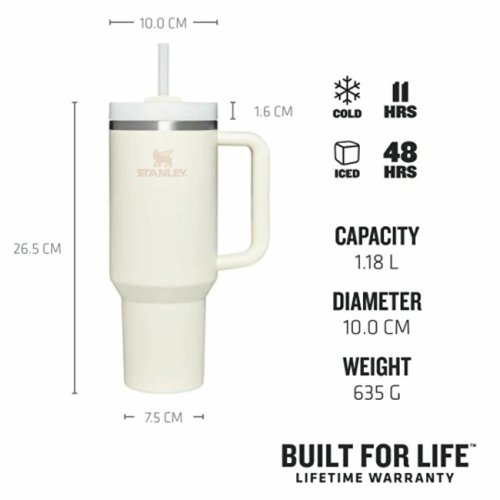 Nerezový termohrnek Quencher v krémové barvě - must have, velký, odolný, krásný, trendy, pro každou příležitost, stylový. Dobře uchopitelný, jemný povrch, nabízí stylový, sofistikovaný vzhled a hřejivý, sametový pocit. Přesto jej lze mýt v myčce nádobí a má veškerou odolnost, na kterou se u značky Stanley 1913 můžete spolehnout. Pod jedinečným povrchem Soft Matte se skrývá konstrukce z recyklované nerezové oceli a dvoustěnná vakuová izolace. V horní části se naleznete patentové víčko FlowState™ s otočným krytem se třemi polohami: