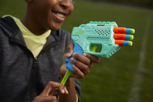 Ztrojnásobte svou bojovou akci s balíčkem NERF Elite 2.0 Tactical Pack, který obsahuje 3 blástry a 20 pěnových šipek NERF Elite! Pusťte se do 2hlavňových výstřelů s blástrem Operator DB-2, který vystřeluje 2 šipky za sebou, má 2šipkovou hlaveň, zatahovací rukojeť, zaměřovací dalekohled a pažbu. Pro odpalování tří šipek sáhněte po blástru Trio TD-3, který vypustí 3 šipky za sebou, má 3 hlavně a taktickou lištu. Připravte se na to být jedničkou ve hře s blástrem Ace SD-1, který vystřeluje 1 šipku, má stahovací nabíjecí rukojeť a integrovaný zásobník na 1 šipku. Tyto blástry jsou zábavné a snadno se používají, takže se okamžitě pustíte do her NERF! Nabijte, naplňte a zmáčkněte spoušť – 3 jednoduché kroky, abyste mohli začít hrát! Toto balení 3 blástrů je skvělé pro fanoušky NERF, kteří chtějí budovat své sbírky blástrů pro každou soutěžní výzvu. Je to skvělý dárek pro každého! Doporučují se brýle (nejsou součástí balení). Nejsou potřeba žádné baterie.