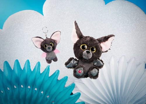 Netopýr Baako je tzv. NICI Bean Bag, na hlavě má kroužek na klíče ze stříbrného kovu a zaujme svými roztomilými růžovými ušima. Zlatě třpytivé oči v kontrastu s tmavou srstí z něj dělají roztomilého společníka. Výška: 9 cm Věk: 3+
