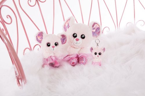 Růžová myš s růžovým třpytivým nosem a třpytivýma očkama. To je baletní myš Yammy z naší kolekce baletek GLUBSCHIS. Cukrovou třešničkou na dortu je růžová tutu sukýnka. Výška: 15cm Věk: 0+
